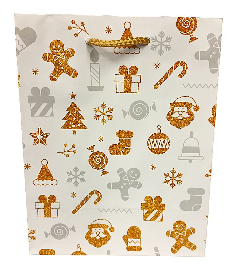 Stílusos és praktikus ajándéktasak ünnepi alkalmakra, karácsonyi motívumokkal díszítve. Ideális választás ajándékaid elegáns csomagolásához.