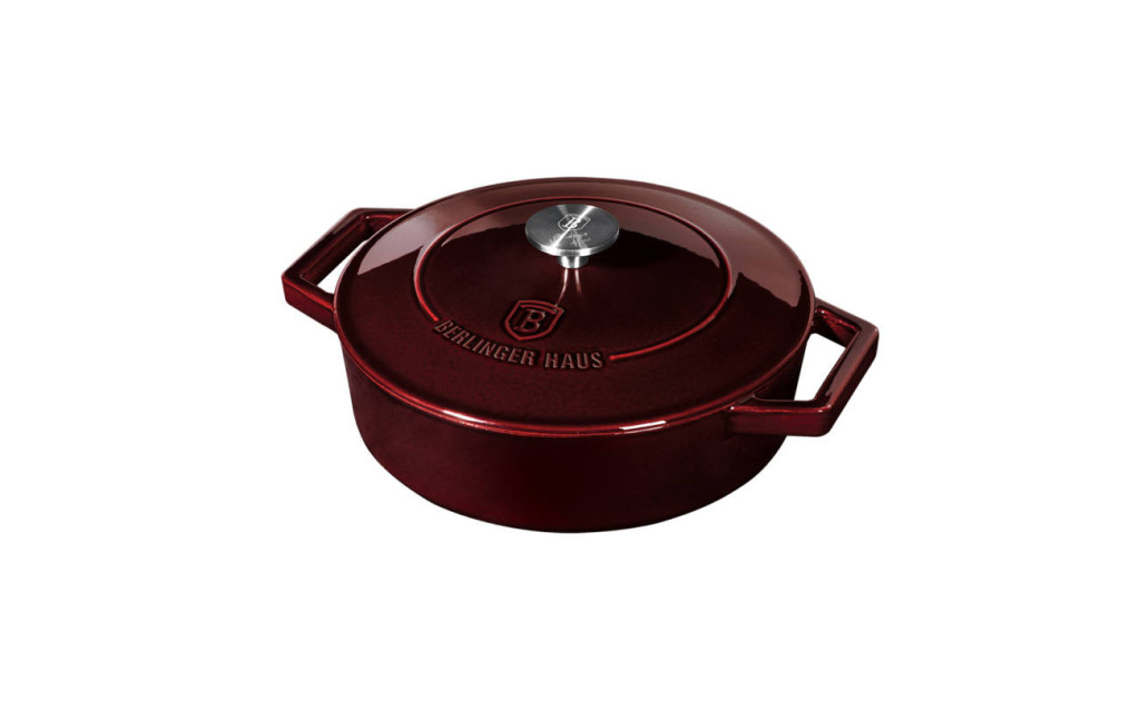 Berlinger Haus Burgundy Öntöttvas alacsony lábas fedővel 26 cm-es BH-6498