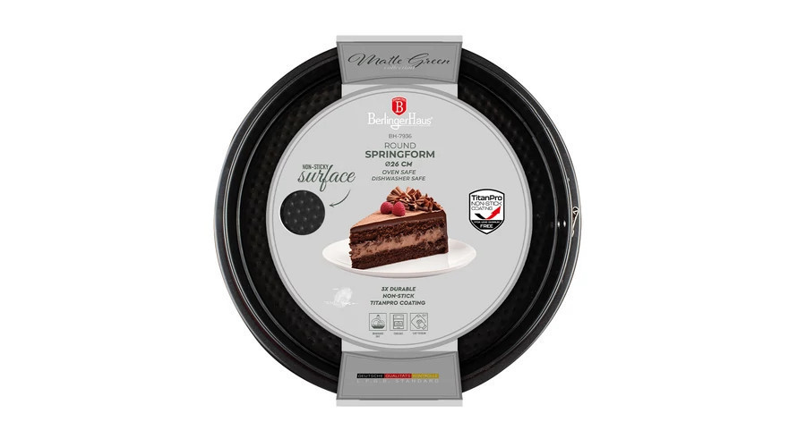 Berlinger Haus Matte Green Collection kapcsos kerek tortaforma titán bevonattal, alátéttel BH-7936