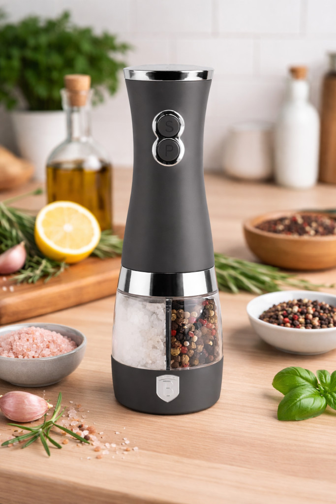 Az Antracit Collection részeként a 2 az 1-ben elektromos só- és borsőrlő nemcsak praktikus, hanem stílusos kiegészítője is lehet konyhájának. A rozsdamentes acélból készült, kerámia darálóval ellátott őrlő elegáns matt antracit színével bármely modern konyhában megállja a helyét.