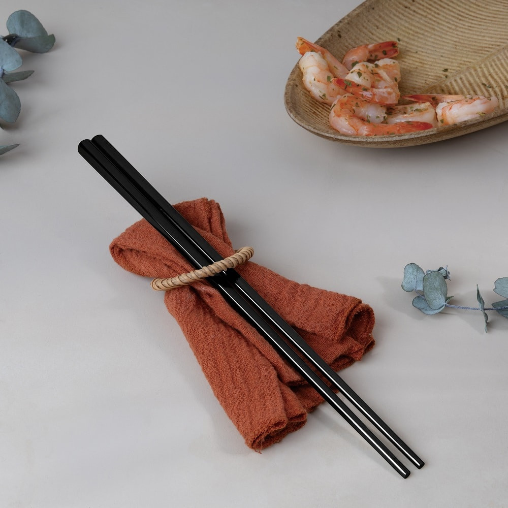 Kiváló minőségű rozsdamentes acélból készültek , ezek az evőpálcikák kivételes szilárdságot, korrózióállóságot és hosszan tartó fényt biztosítanak. A fekete PVD bevonat nemcsak a tartósságot fokozza, hanem elegáns, modern megjelenést is kölcsönöz nekik, amely bármelyik étkezőasztalon kiemelkedik.