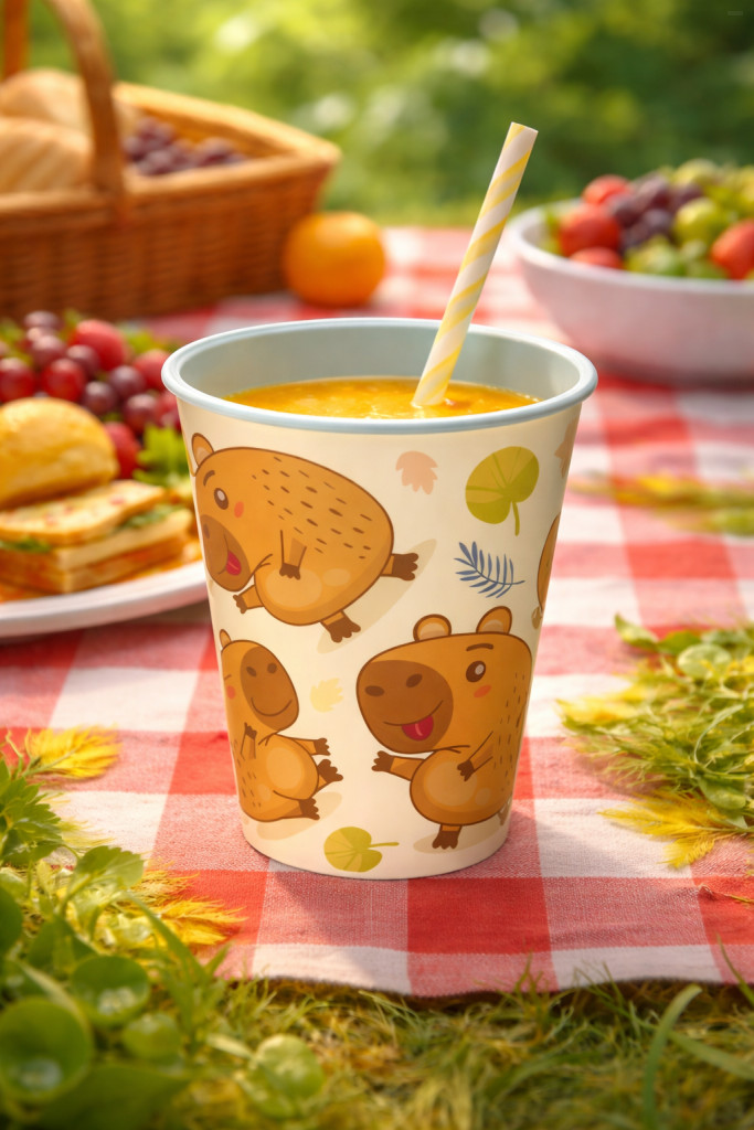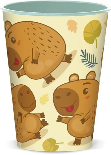 Vidám capibara mintával díszített műanyag pohár, amely ideális választás gyermekek számára mindennapi használatra. Könnyű, strapabíró kialakítása miatt tökéletes otthonra, kiránduláshoz, óvodába vagy akár piknikhez is. A kedves állatos minta játékossá és szerethetővé teszi az italozást a gyerekek számára.