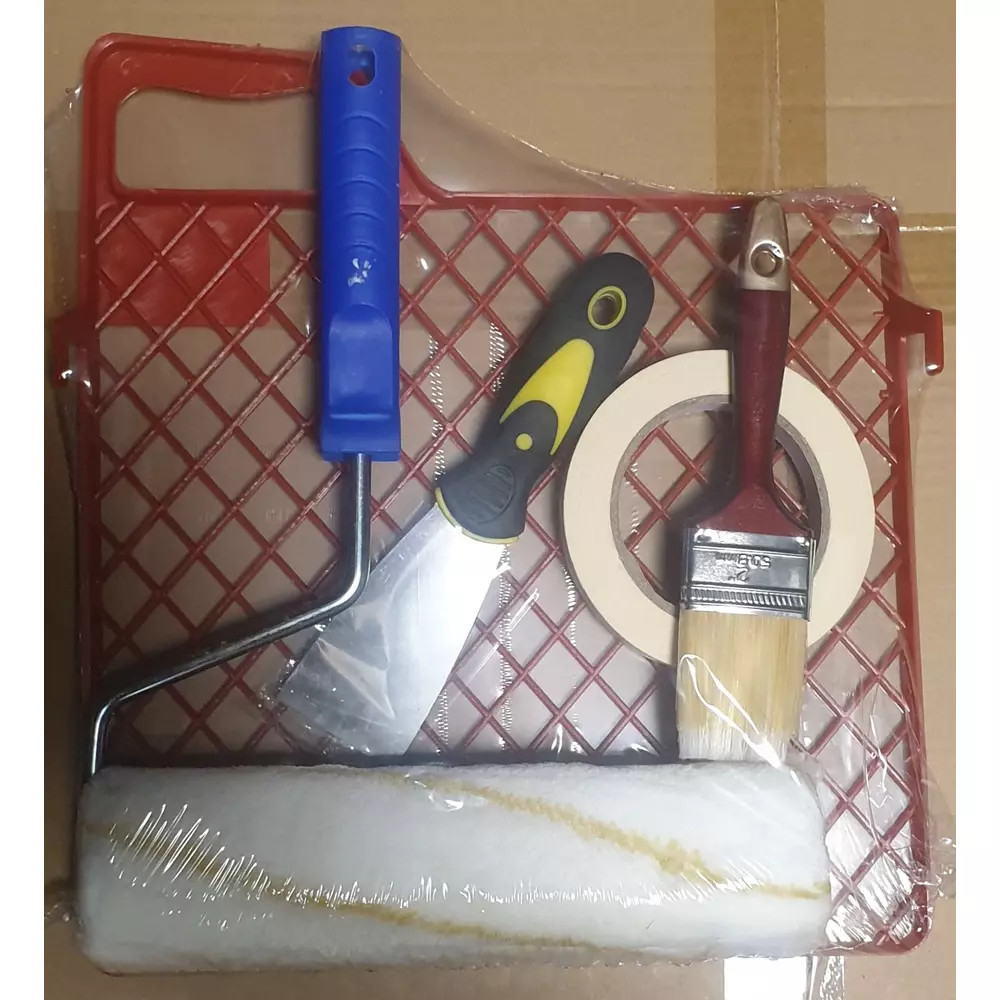 Festőhenger Szett 5 Db-Os 25Cm Beltéri Henger Nyéllel Műszálas Ecset 50Mm Spakli 40Mm Maszkolószalag 35Mm/50M