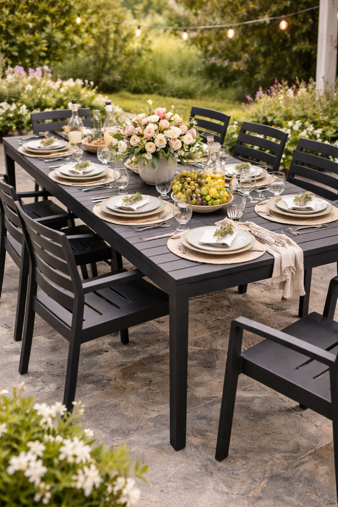 Az Indo asztal modern és praktikus választás nagyobb teraszokra, kertekbe, étkezőkbe vagy fedett kültéri helyiségekbe. Letisztult formavilága és elegáns antracit színe időtálló megjelenést biztosít, így könnyedén összehangolható különféle székekkel és kerti bútorokkal.