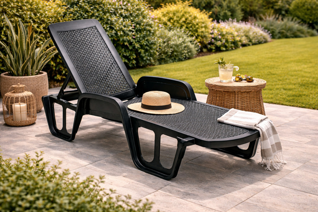 Pool napozóágy rattan hatású antracit színben