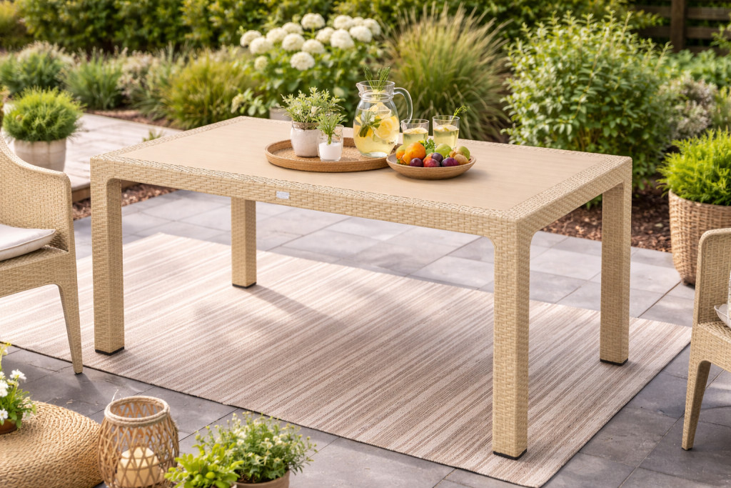 Rattan kerti asztal 150x90 cm - cappuccino színben