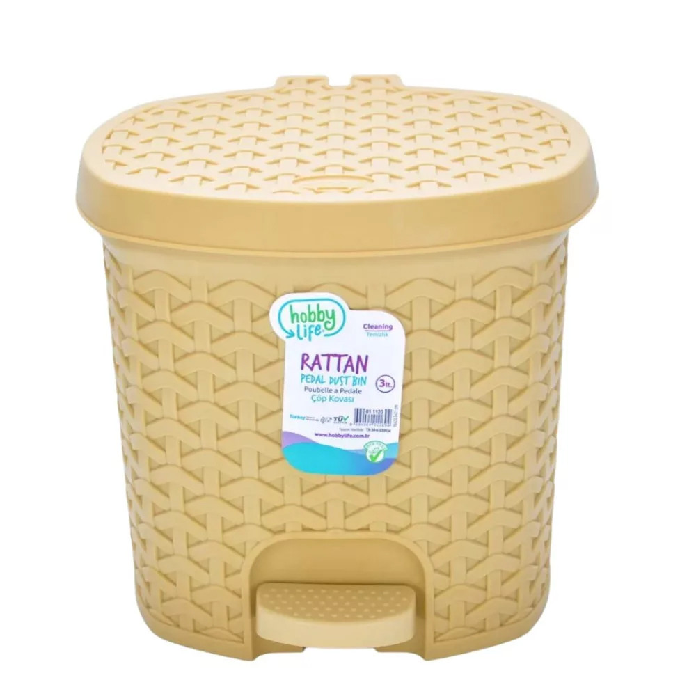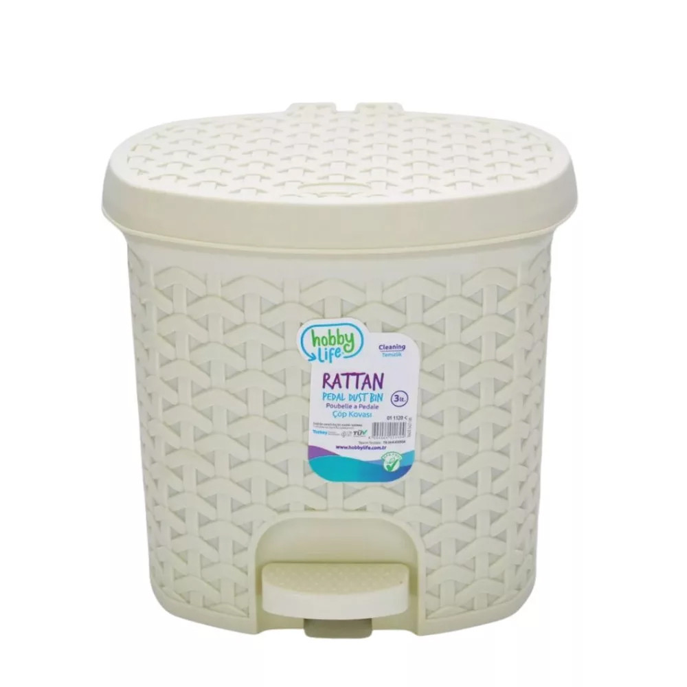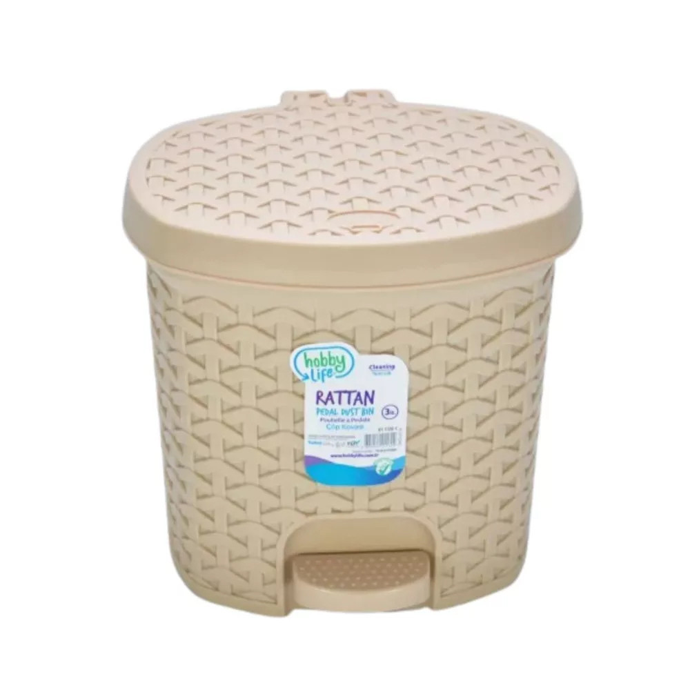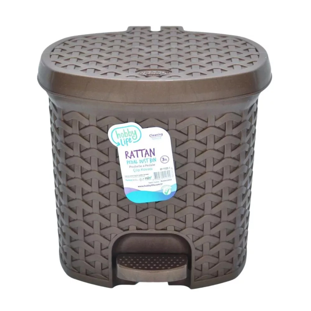 A 3 literes, rattan hatású pedálos szemetes elegáns megjelenést ad a legkisebb helyiségeknek is. A lábpedálos nyitás higiénikus, a kivehető belső betét pedig megkönnyíti az ürítést és tisztítást. Strapabíró műanyagból készül, így könnyű, mégis stabil. Praktikus mérete miatt ideális fürdőszobába, vendég-WC-be, hálószobába vagy munkaállomás mellé.