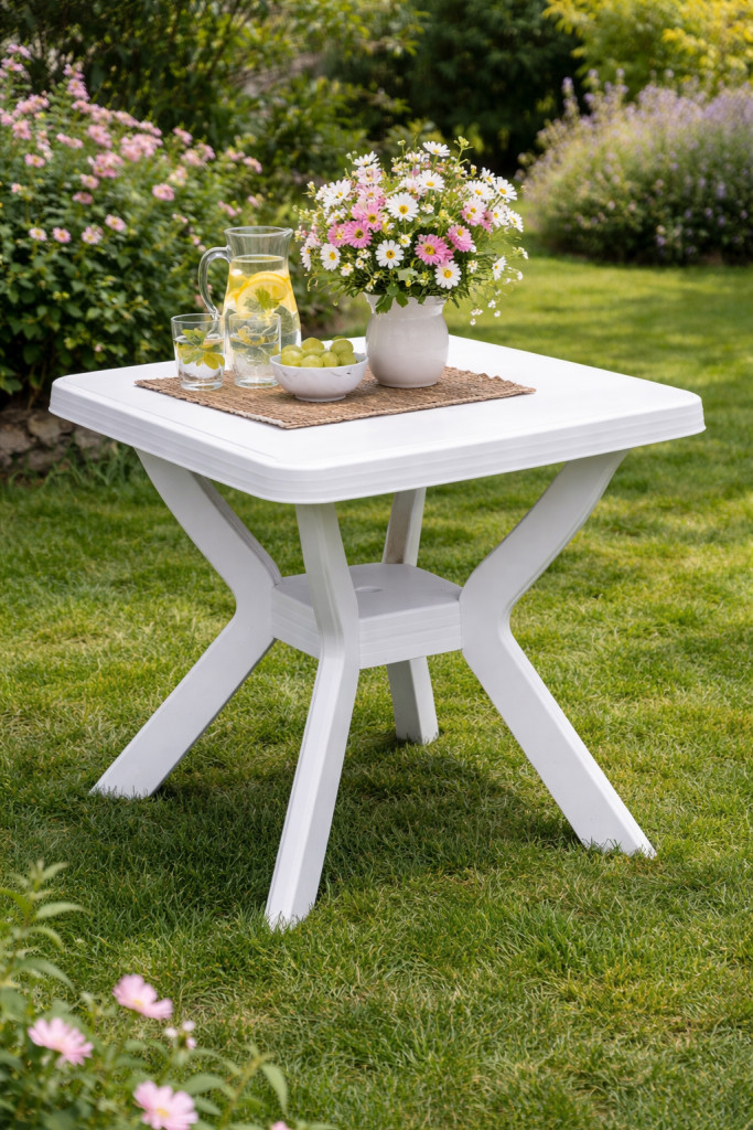 A Reno műanyag asztal praktikus és esztétikus választás kisebb teraszokra, erkélyekre, kertekbe vagy nyaralókba. Kompakt méretének köszönhetően kis helyen is kényelmesen elfér, miközben megfelelő felületet biztosít kávézáshoz, étkezéshez vagy baráti beszélgetésekhez. Klasszikus fehér színe letisztult, friss megjelenést kölcsönöz, így könnyen illeszkedik különböző kültéri környezetekbe.