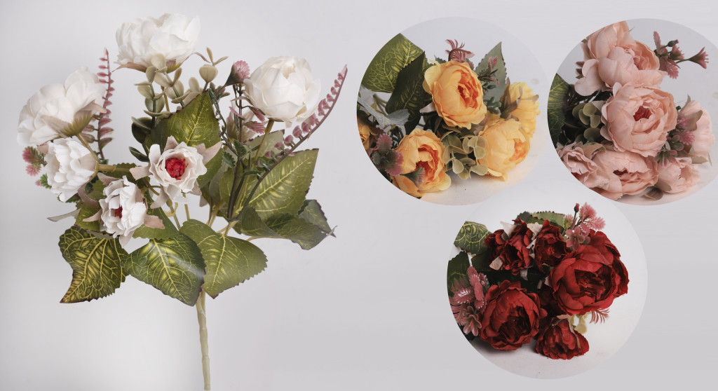 Művirág Rózsa csokor 4S 5 Ágú 30 cm 550248