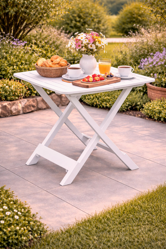 A Tevere műanyag asztal praktikus és helytakarékos választás teraszra, erkélyre, kertbe vagy nyaralóba. Letisztult megjelenésének és fehér színének köszönhetően könnyen illeszkedik a különböző kültéri és beltéri környezetekhez, miközben kényelmes felületet biztosít mindennapi használatra.