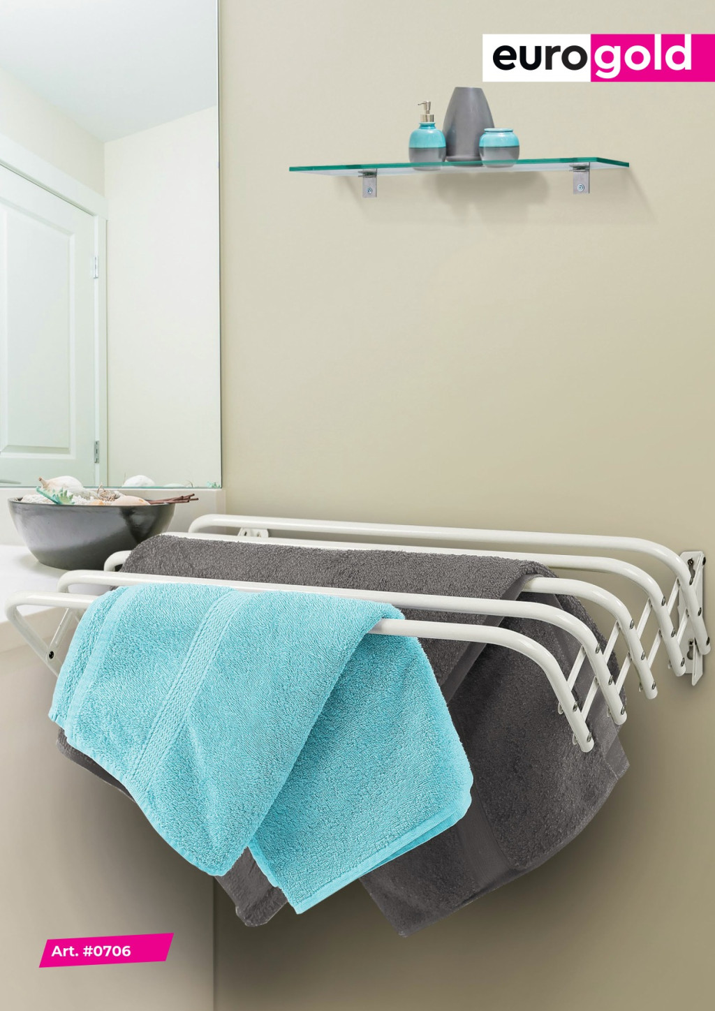 Használható ruhaszárítóként és kihúzható törölközőtartóként is. Alkalmas száraz és nedves ruhák, valamint törölközők elhelyezésére.
