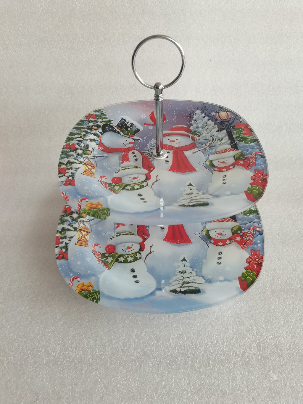 2 emeletes üveg sütikínáló, hóember mintával – 20 + 25 cm 102111