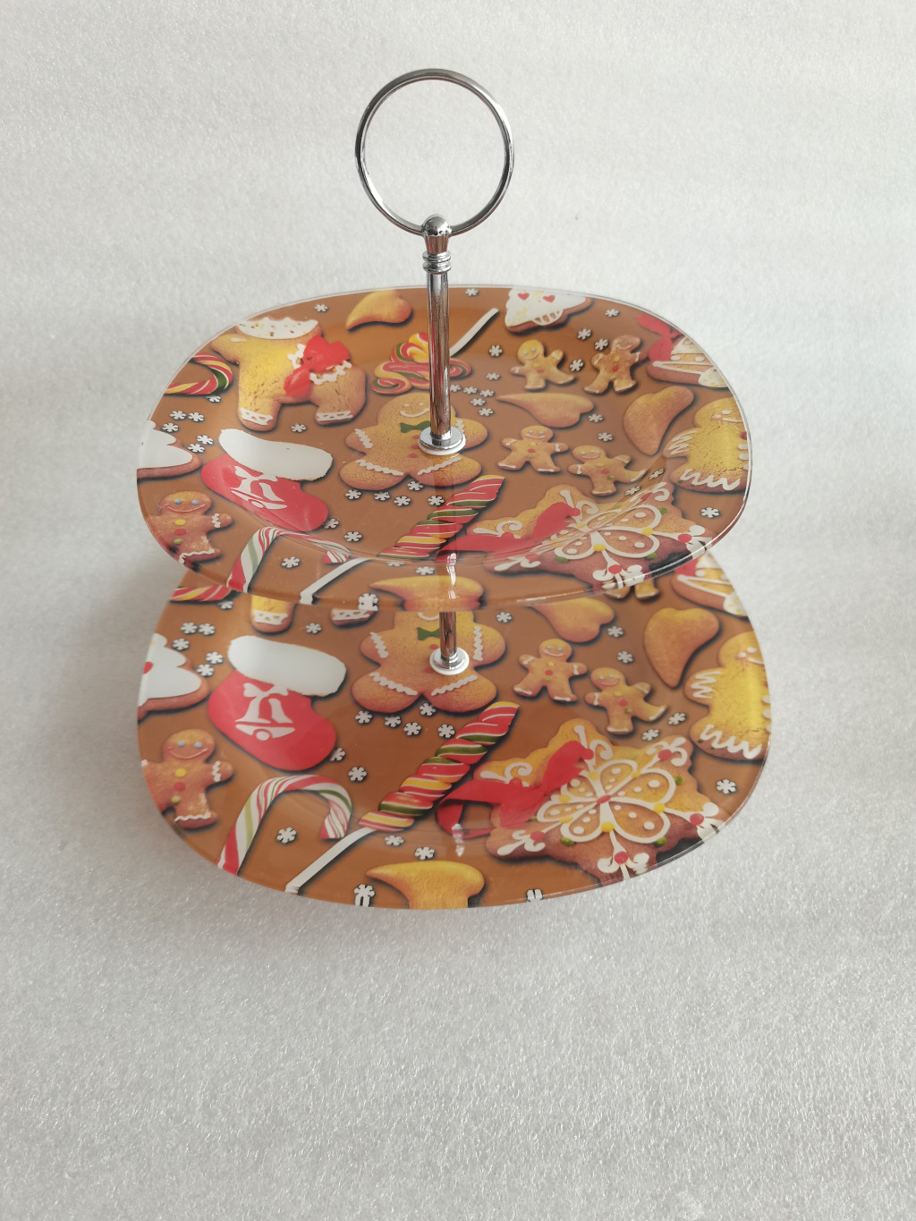 Karácsonyi üveg emeletes sütikínáló mézeskalács mintával 102112