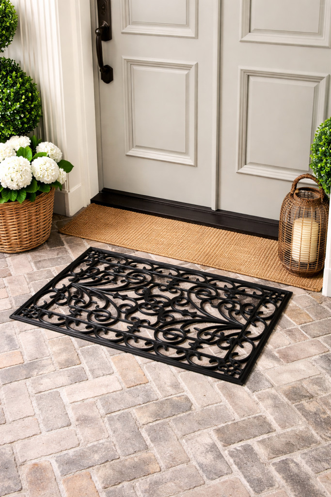 Ez a dekoratív, vintage mintás gumi lábtörlő praktikus és esztétikus választás otthona bejáratához. Strapabíró gumianyagának köszönhetően tökéletesen kiterül, stabilan fekszik a padlón, és hatékonyan segít összegyűjteni a cipőtalpról a koszt és a nedvességet. Egyedi, díszes megjelenésével stílusosan feldobja a bejáratot, teraszt vagy akár a lakás belső tereit is.